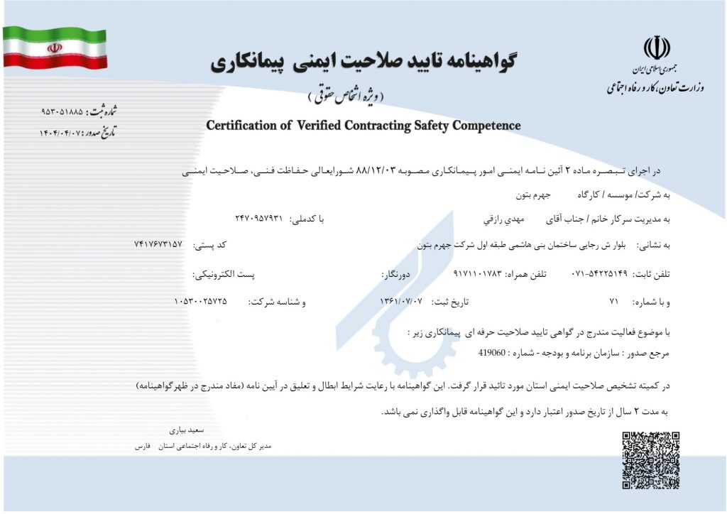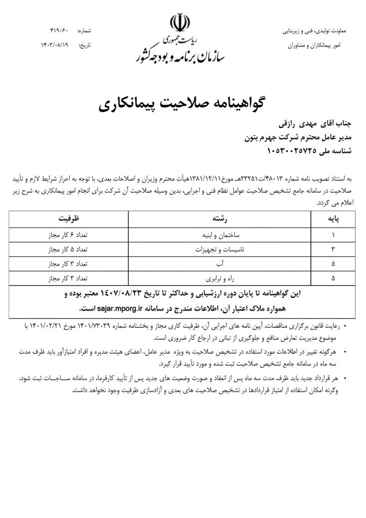 شرکت مهندسی جهرم بتون/ ثبت 71
